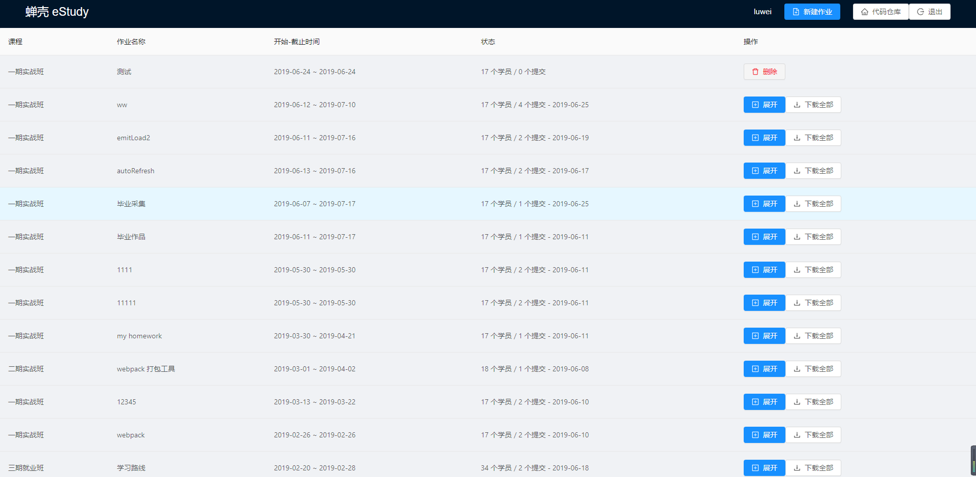 使用Vue-cli工具进行组件化项目开发,可上传下载文件,教师页面可以新建批改作业